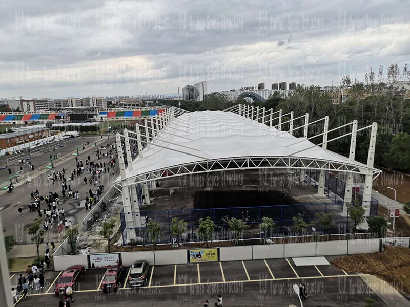 The membrane structure project of the sports field of Zhejiang Textile and Apparel Vocational Technical College East and West Campus is located in Ningbo City, Zhejiang Province. The membrane structure has an expanded area of 6000 square meters and was constructed by Ningbo Wanhao Space Structure Engineering Co., Ltd.